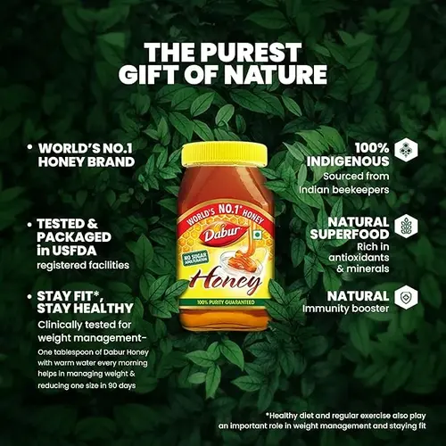100% Pure Honey: We make Dabur Honey from flower nectar without additives.